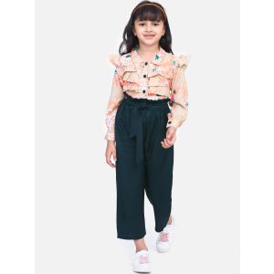 1. Girls Peach-Coloured & Green Printed Top with Palazzos